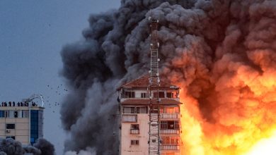 لحظة تدمير طائرات الاحتلال الإسرائيلي برج فلسطين وسط غزة