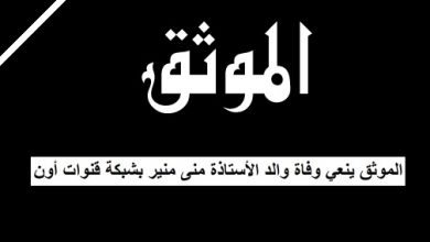الموثق ينعي وفاة والد الأستاذة منى منير بشبكة قنوات أون