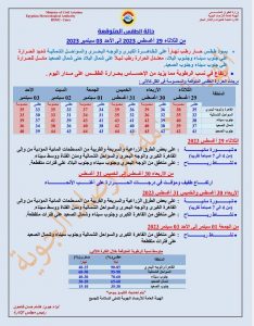 وبشأن حالة الطقس غدا الثلاثاء 29 أغسطس 2023، يشهد بعض الطرق الزراعية والمناطق القريبة من المسطحات المائية التي تربط القاهرة الكبرى والوجه البحري والسواحل الشمالية، ومدن القناة ووسط سيناء، ظاهرة الشبورة المائية.