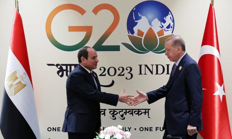 وأوضح عبد الفتاح أن لقاء ألرئيس السيسى مع أردوغان يسمى ذلك فى علم الدبلوماسية دبلوماسية المؤتمرات والكواليس بمعنى أن أكثر من رئيس يشارك فى فعالية أو مؤتمر دولى ثم يلتقوا على هامش المؤتمر يقوموا بأجراء مباحثات للأتفاق على أمور مهمه، مبينا أن الرئيس السيسى واردوغان يريدان تواصلا فى عملية التقارب والمصالحة بين مصر وتركيا ،بدليل أنهما لا يتفوتا فرصة للتواصل هاتفيا أو يلتقيا مباشرة لأجراء مباحثات كما حدث فى نيودلهي وقمة العشرين