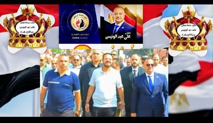 النائب علي عبد الونيس حزب حماة الوطن ومحبيه يقومون بمسيرة حاشدة أمام مقره بدائرة دار السلام والبساتين تعبيرا عن دعمهم وحبهم للنائب المستشار على عبد الونيس رمز التاج حزب حماة الوطن رقم 2 ويعد على عبد الونيس من النواب المؤثرين بجنوب القاهرة وله باع كبير في خدماات المواطنين