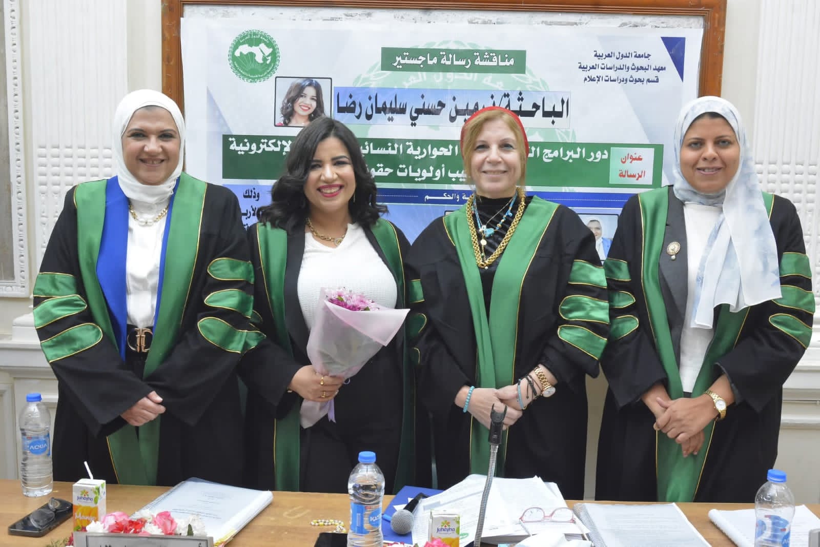 حصلت الكاتبة الصحفية نرمين سليمان على درجة الماجستير بتقدير عام “امتياز” من قسم بحوث ودراسات الإعلام بمعهد البحوث والدراسات العربية التابع لجامعة الدول العربية، عن رسالتها حول “دور البرامج التليفزيونية الحوارية النسائية والمواقع الإلكترونية في ترتيب أولويات حقوق المرأة”، والتي قدمت من خلالها الباحثة قراءة نقدية وتحليلية شاملة للمشهد الإعلامي المصري.