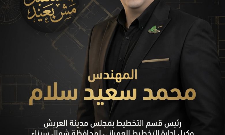 محمد سعيد سلام ابن محافظة شمال سيناء فوق السن خدمة لزملائه المهندسين