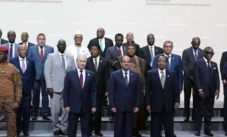 الرئيسان السيسي وبوتين يتوسطان صورة للقادة المشاركين فى القمة الأفريقية الروسية