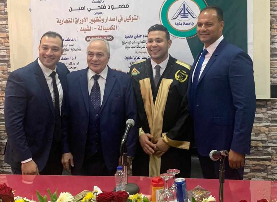 حصل الرائد محمود فتحي أمين ، الضابط بوزارة الداخلية على درجة الدكتوراة من كلية الحقوق بجامعة بنها، بدرجة امتياز على الرسالة المقدمة منه تحت عنوان “التوكيل واصدار وتظهير الأوراق التجارية الكمبيالة – الشيك”.